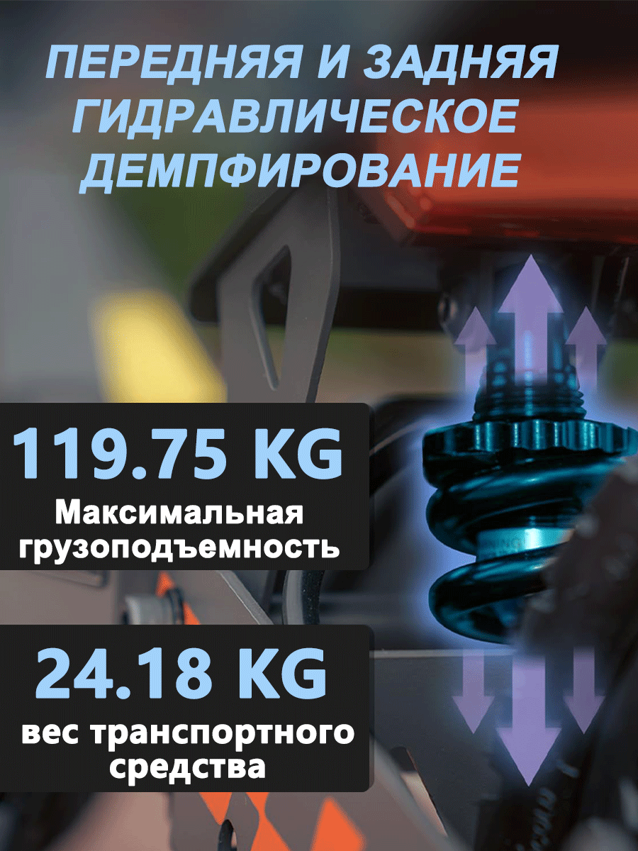 Время полной зарядки аккумулятора составляет 8 часов. Информационный LED-дисплей отображает скорость, уровень заряда и другую важную информацию. Преодолеваемый угол наклона 20 градусов позволяет без труда подниматься на мосты, эстакады и другие возвышенности.
