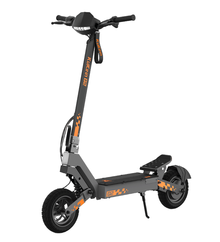 Электросамокат Kukirin G2 выполнен на комбинированной раме из алюминия и стали, где алюминий обеспечивает легкость, а сталь — прочность в местах повышенных нагрузок. Складной механизм позволяет быстро уменьшить габариты устройства для удобного хранения в квартире, офисе или багажнике автомобиля. Вес самоката составляет 25.3 кг, что характерно для мощных моделей с усиленной конструкцией и 10-дюймовыми колесами.