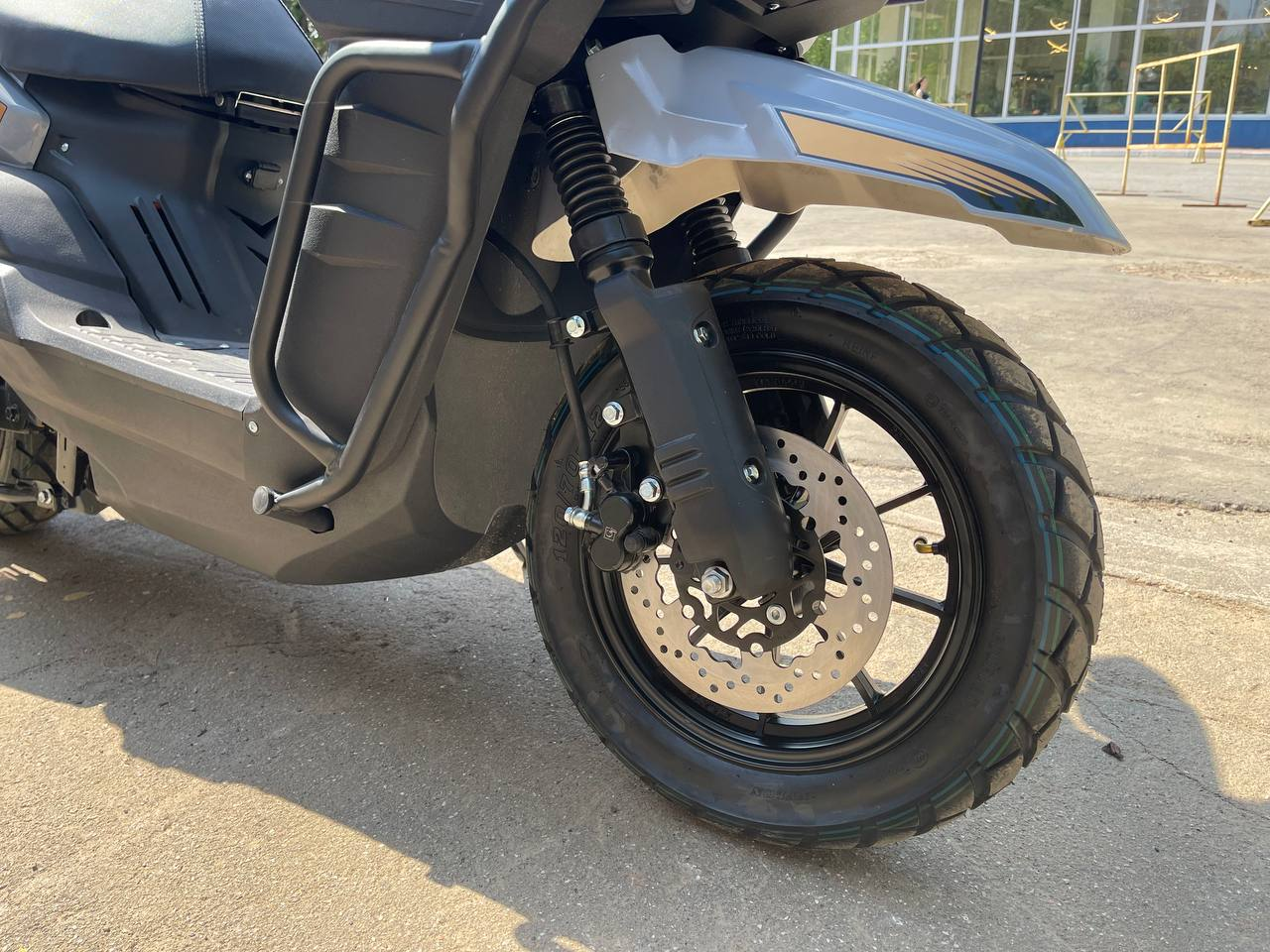 Скутер оснащен алюминиевыми защитными дугами вокруг переднего и бокового пластика, которые обеспечивают защиту от ударов и повреждений в сложных дорожных условиях. Эти элементы придают скутеру настоящий эндуро-стиль и делают его более устойчивым к внешним воздействиям.